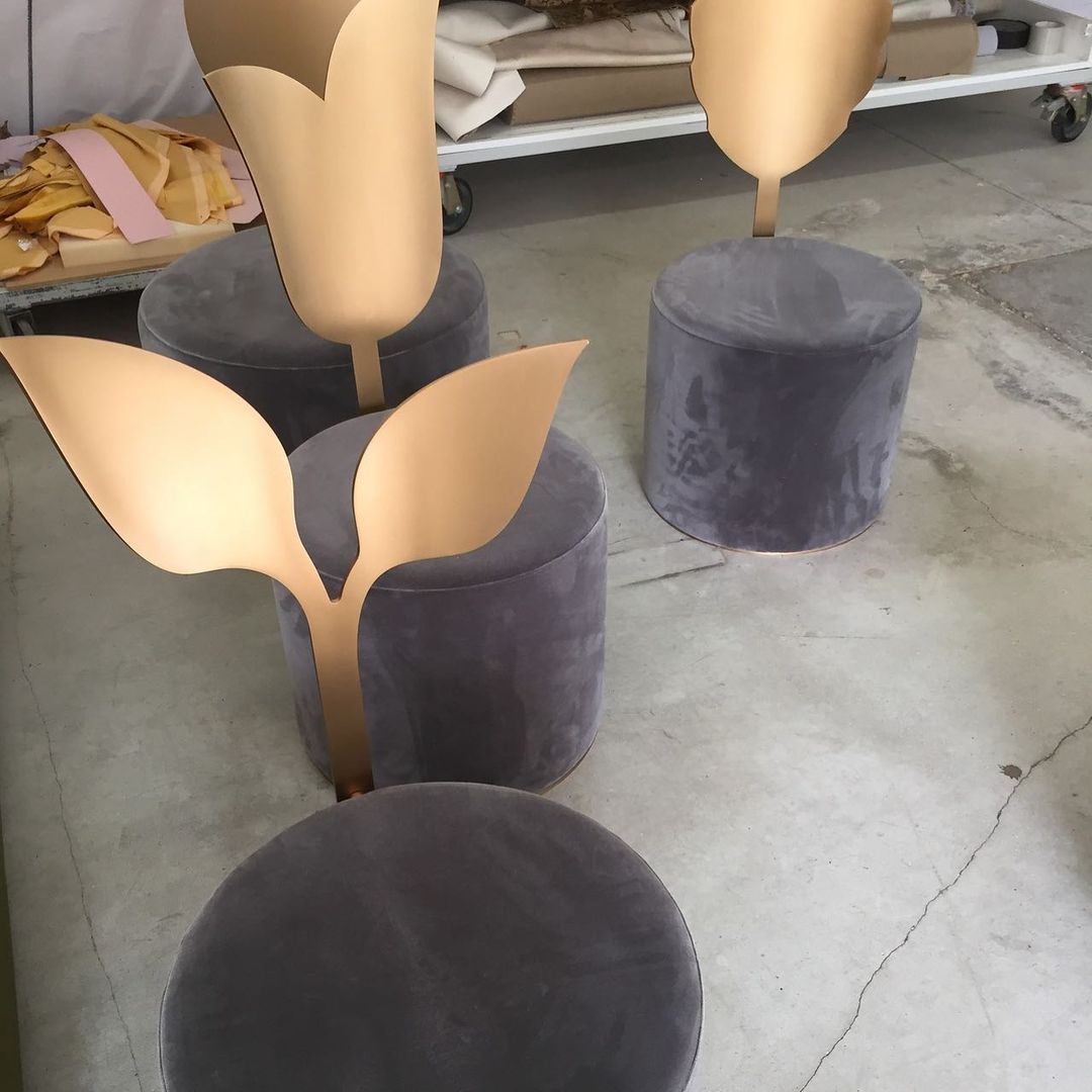 Secolo Ivy Мягкий пуф со спинкой Плющ из сатинированной стали