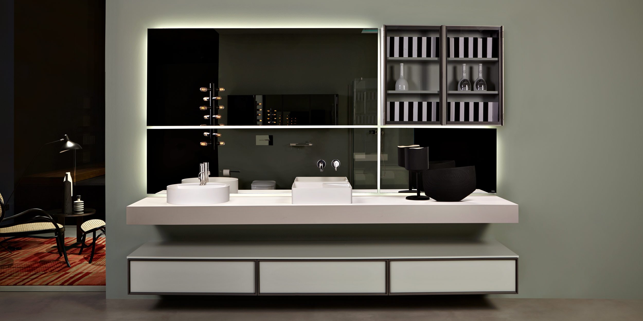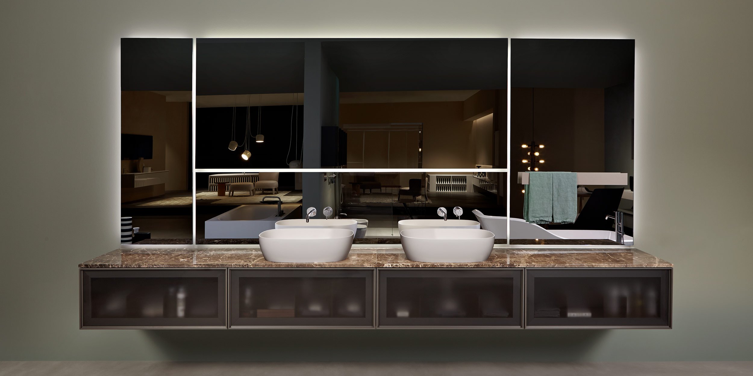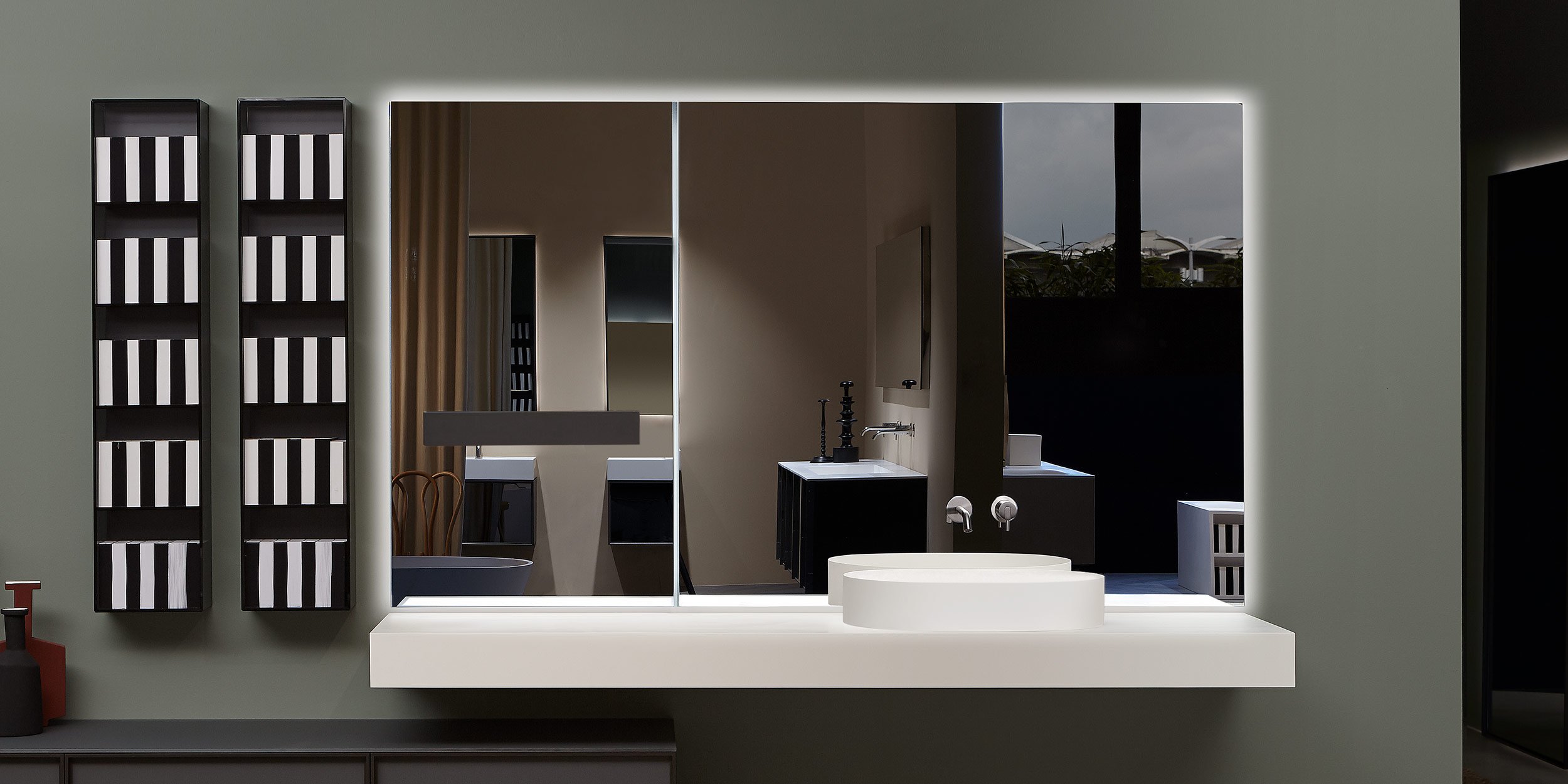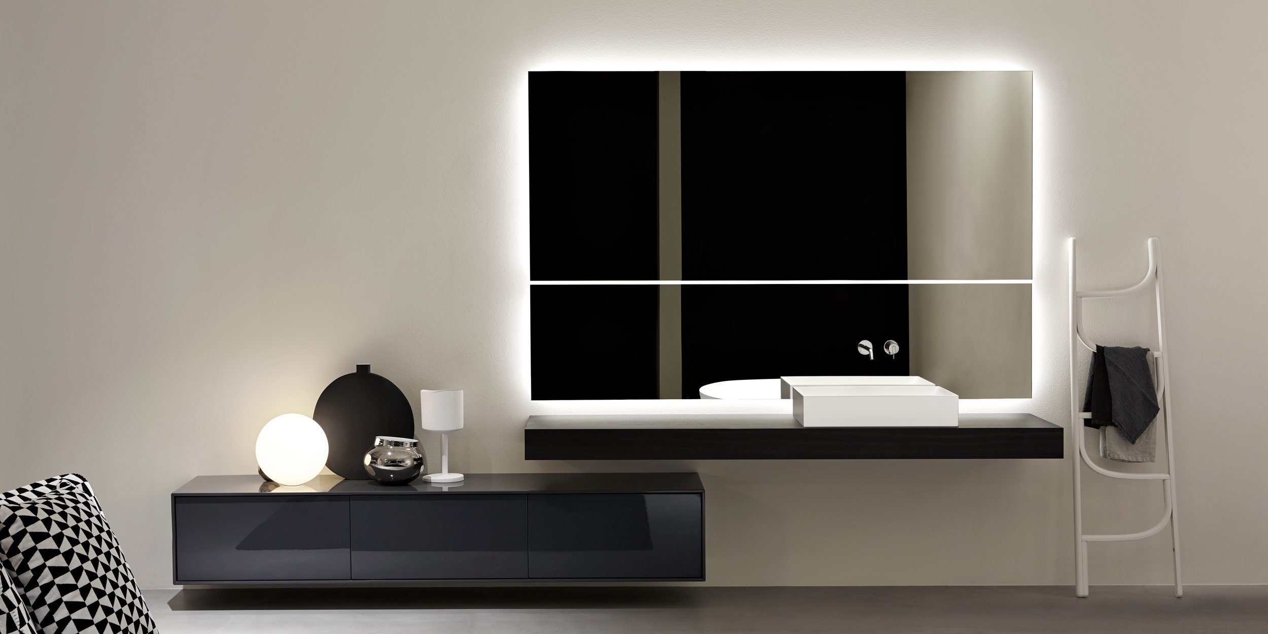 Ряд решений, в которых есть неотъемлемость. Зеркало абсолютной резкости, идеальная поверхность, которая «ускользает» от стены с подсветкой, которая, кажется, волшебным образом приостанавливает ее. & Nbsp; Neutro & nbsp; - абсолютное зеркало с абстрактным присутствием, & nbsp; Neutroled & nbsp; интегрирует систему рассеянного освещения на всех стороны зеркала, однако Neutrokit - это решение, которое позволяет объединить смесители и держатель для полотенец. Разнообразный диапазон форм и размеров, позволяющий создавать различные композиции, а также оборудовать зону раковины элементы размещены в идеальном положении для любых требований настройки.