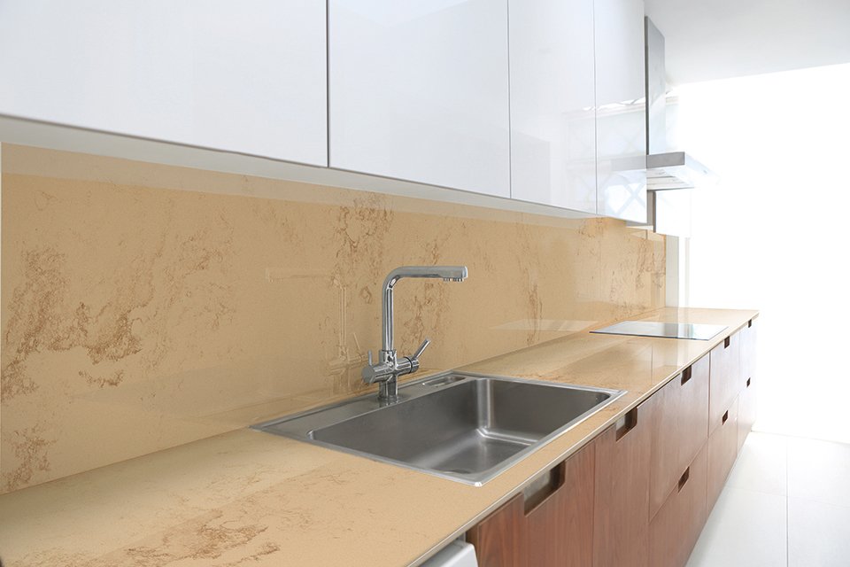 Возможность размещения в зонах сильного нагрева или непосредственно за газовой варочной поверхностью. Лучшая альтернатива неустойчивым к сильному нагреву материалам, таким как искусственный камень.