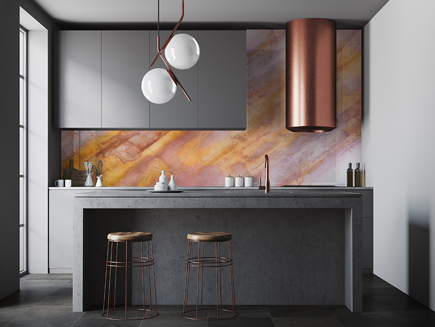 Возможность размещения в зонах сильного нагрева или непосредственно за газовой варочной поверхностью. Лучшая альтернатива неустойчивым к сильному нагреву материалам, таким как искусственный камень.