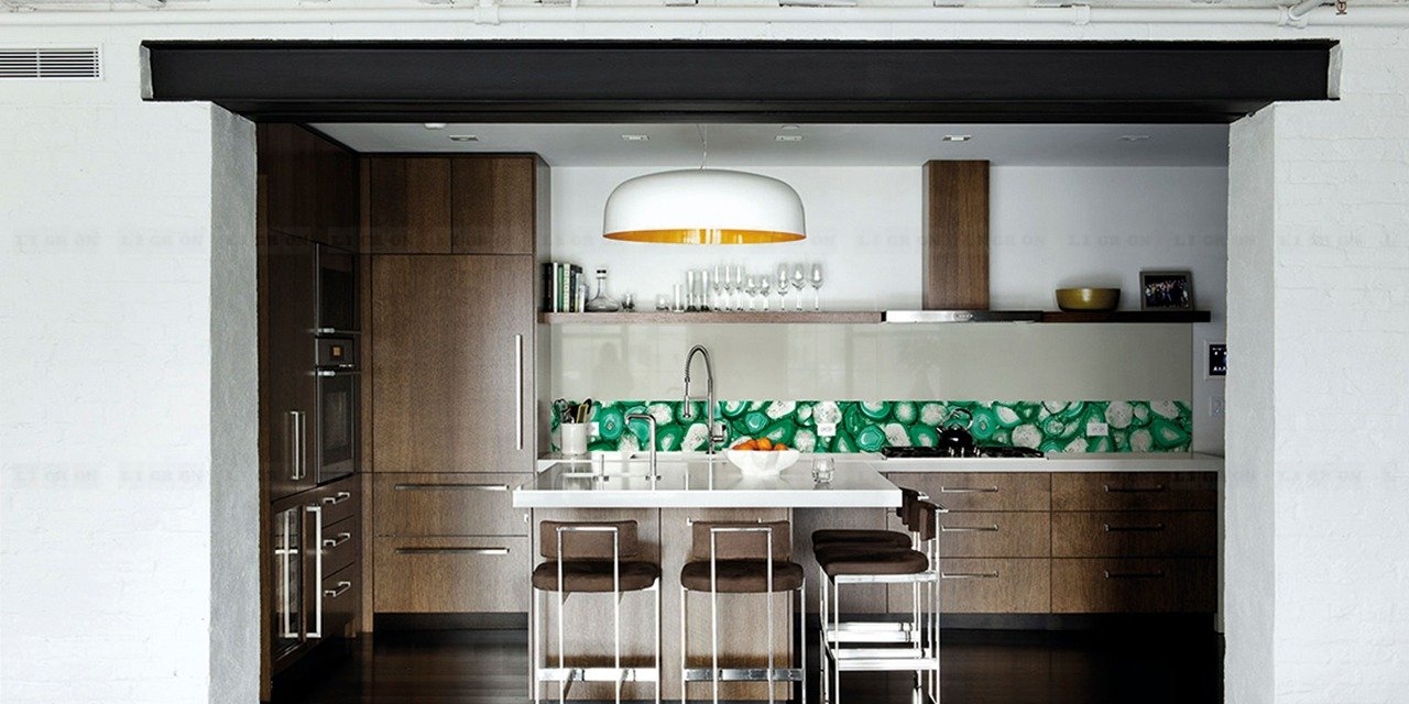 Стекло зеркалит, визуально увеличивая размеры помещения, расширяя пространство. Это ключевой момент в дизайне малогабаритных кухонь и дополнительный плюс в оформлении больших просторных помещений.