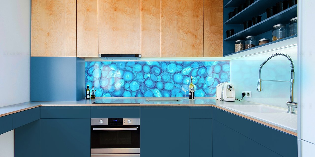 Стекло зеркалит, визуально увеличивая размеры помещения, расширяя пространство. Это ключевой момент в дизайне малогабаритных кухонь и дополнительный плюс в оформлении больших просторных помещений.