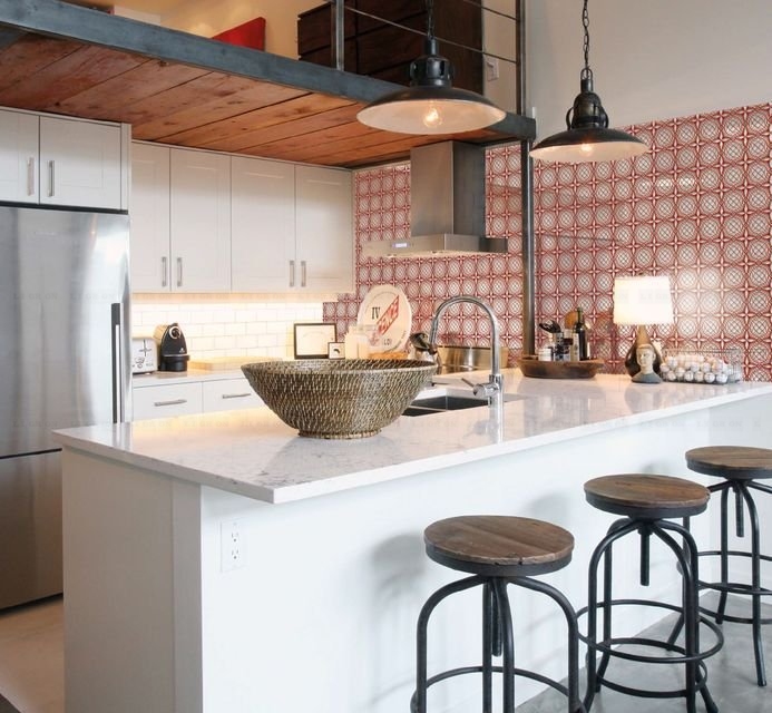 Стекло зеркалит, визуально увеличивая размеры помещения, расширяя пространство. Это ключевой момент в дизайне малогабаритных кухонь и дополнительный плюс в оформлении больших просторных помещений.
