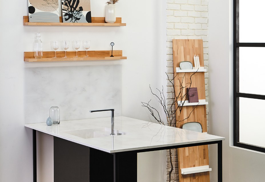Возможность размещения в зонах сильного нагрева или непосредственно за газовой варочной поверхностью. Лучшая альтернатива неустойчивым к сильному нагреву материалам, таким как искусственный камень.