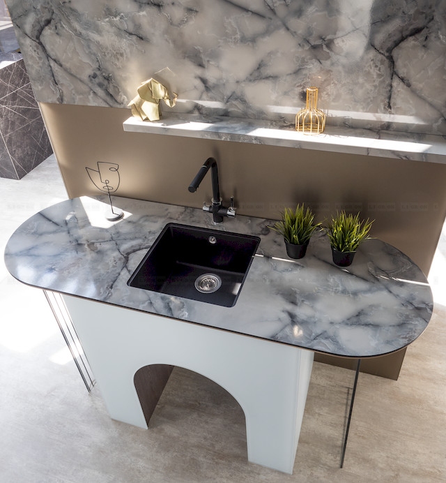 Compact является абсолютно влагостойким материалом, поэтому активно используется как на кухне, так и в ванных комнатах. LIGRON изготавливает из этого материала даже мойки.