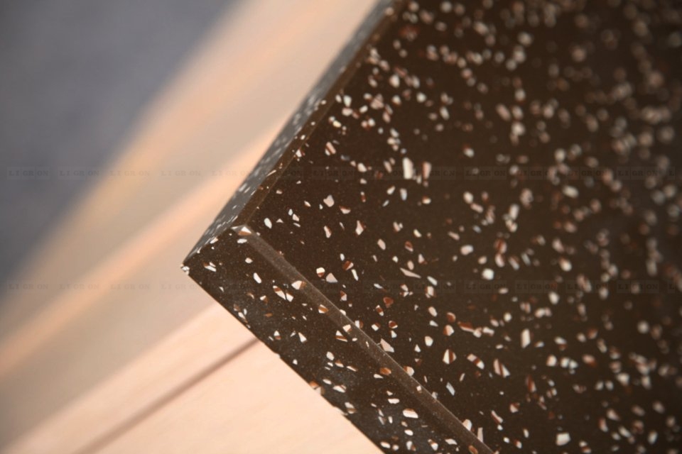 Имеет презентабельный внешний вид. В отличие от натурального камня, искусственный камень более теплый и приятный на ощупь. Принимает температуру окружающей среды.