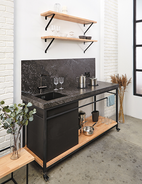 Столешницы Ceralan изготавливаются с подложкой из экструдированного пенополистирола. По длинным сторонам столешница имеет усиление в виде специального металлического профиля, который клеится вплотную к канту между подложкой и кантом столешницы.