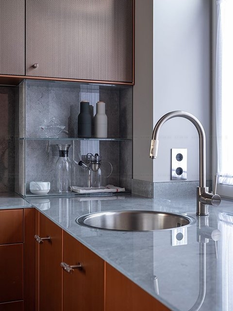 Возможность размещения в зонах сильного нагрева или непосредственно за газовой варочной поверхностью. Лучшая альтернатива неустойчивым к сильному нагреву материалам, таким как искусственный камень.