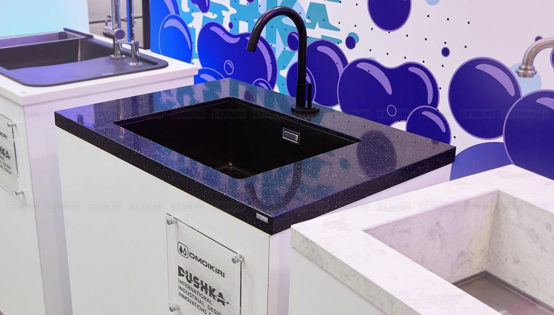 Поэтому имеются ограничения на изготовление столешниц с радиусами. Однако, LIGRON умеет обрабатывать кварцелан и изготавливать из него столешницы и стеновые панели с фигурными классическими профилями.