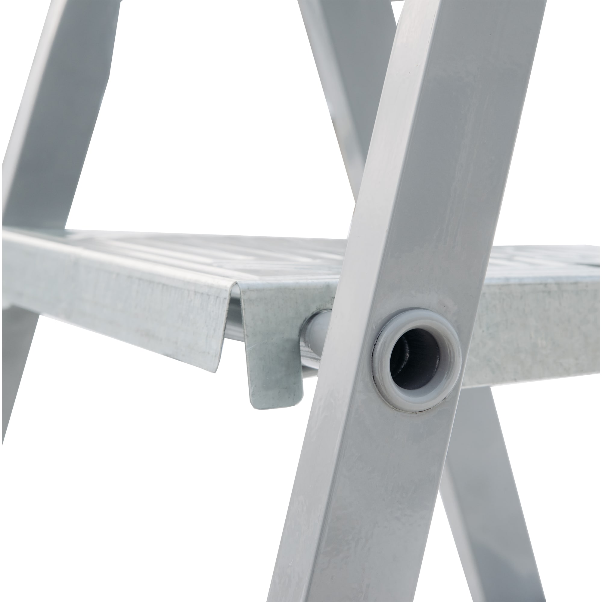 Для продления срока службы храните стремянку в сухом помещении, периодически проверяя фиксацию соединений. Используйте на ровной поверхности для максимальной устойчивости.