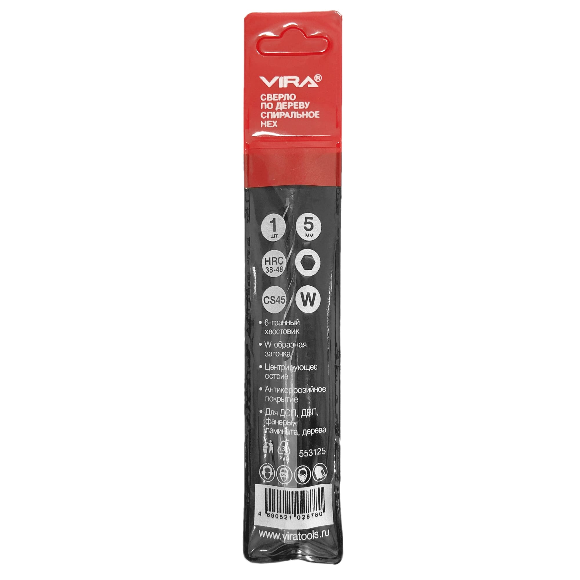 Спиральное сверло VIRA диаметром 5 мм создано для аккуратной работы с деревом и строительными панелями. Идеально подходит для использования с дрелью или шуруповертом благодаря шестигранному хвостовику.