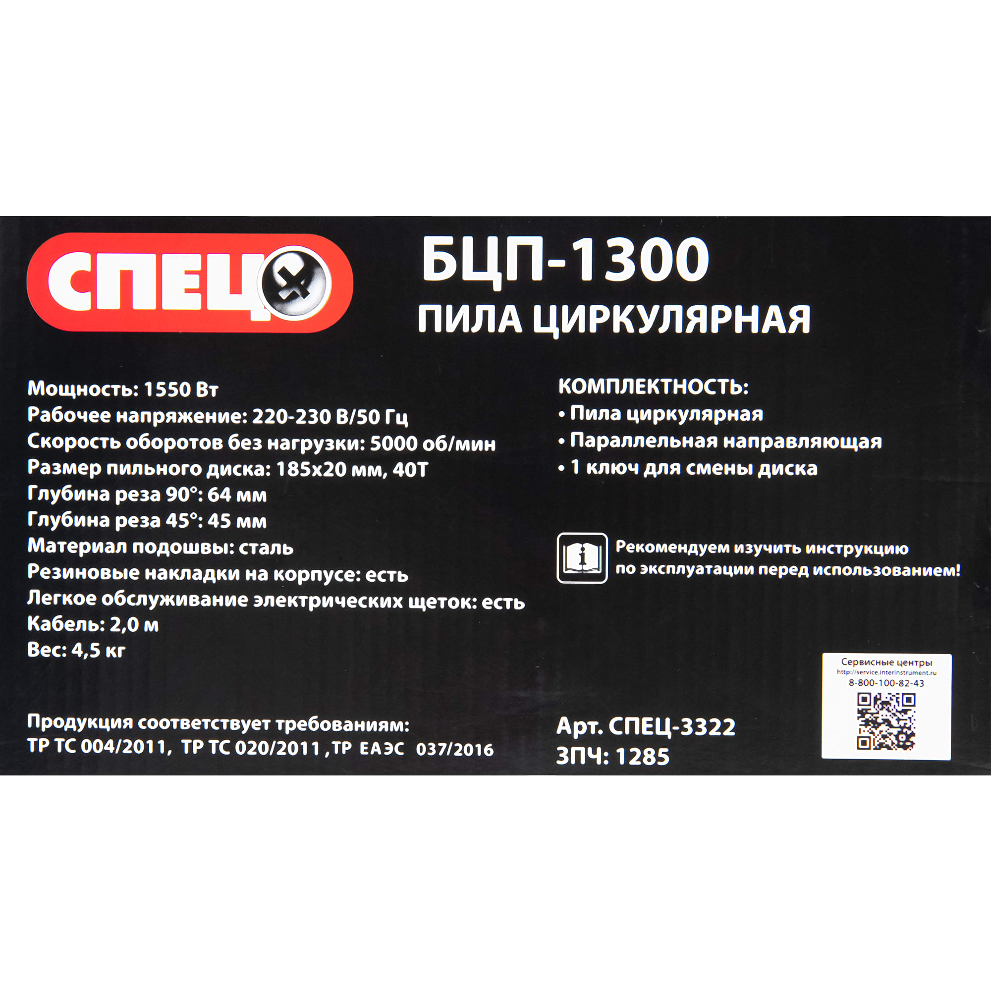 Циркулярная пила СПЕЦ БЦП-1300 для точного распила древесины 82245637 STLM-0022963 предоставляется с гарантией 12 месяцев с момента покупки.